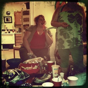 Halloween is my favorite holiday of all time. Sadly, this year, I didn’t have time to decorate (I usually go all out), but it was the first time most everyone who came dressed up! I was a contestant from Legends of the Hidden Temple (google it if you don’t know – it’s an old Nickelodeon show). Ryan was what he is every year – a gentlemen (of sorts), Nikita had wings – but she was a dragon – it was cute. Caitlin was a dark fairy, and Amanda just kind of showed up later – but she was dressed as “awesome”, so I forgave her. It was a fun night, not the spookiest, and this was the first year in a while that there was no Zombie Holocaust, but that’s alright!