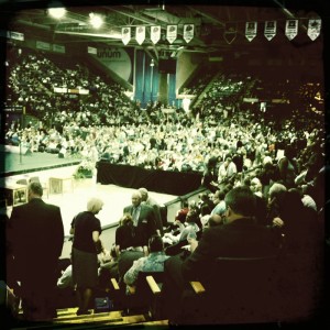 We went back to the hotel and watched SNL and hit the hay. I never sleep well in hotels so the overnight wasn’t the best, but the morning brought adventures of finding McDonalds, and most importantly geocaching! We met Nikita’s mom at the Civic Center (where a 7,500+ person Jehova Witness conference was happening — photo included), had some subways where they ran out of bread! This was a blessing in disguise because it forced me to get flatbread, which is my new favorite thing ever! We weren’t feeling great after that so we chilled in a small part (photos included), walked around a bit (tried to find a few caches, unsuccessfully), then we got even sicker, found a bathroom, then headed back to Orono.
