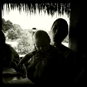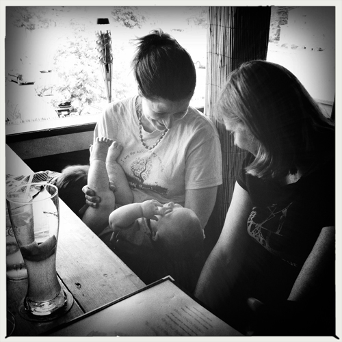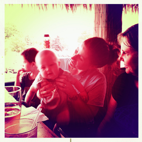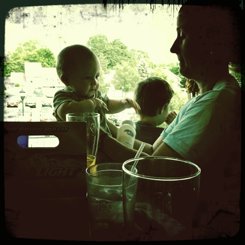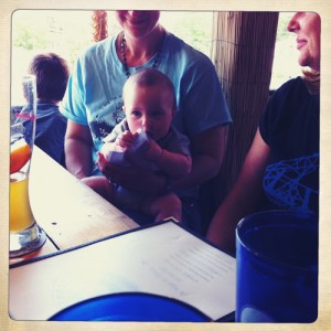 After work yesterday a bunch of full-time went out to the Bear Brew to just decompress a bit before the week of staff training. For those of you who don’t know, I work at a program called Upward Bound that works with low-income, first-generation high school students prepping for college. I was in the program myself as a youngster and now I will be gearing up for my 7th summer as a staff member. It’s a terrific program, and takes a great deal of energy, so we just sat on the deck and had some good company. Faith brought Noah, Gene, and Eli, and I got to play bounce the baby with Eli as he drooled on my face. It was gross, but also he was being a super cutie. Noah was talking trains most of the time, and Mullen and I fretting at each other like we normally do. Overall, it was a great time with great people 🙂 … although I mostly just took photos of the baby!!