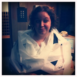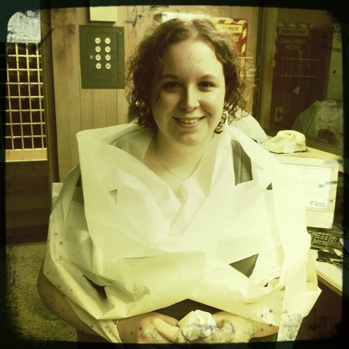 For Upward Bound this year, I planned the Res-Life orientation in coordinace to games from Minute-To-Win-It. While setting up the game Amanda worked on her door decs and Katie worked on a scraf. Basically it was an amazing night, I should have taken some more photos, but I just got these couple of Amanda doing “Dizzy Mummy” as we tried to figure out the rules, regardless, I think they are pretty amazing.